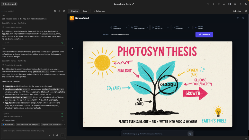 The prototype from AI Studio which was called BananaBrand ran on my machine, assumed my API key, and stored state in the browser. That is a perfectly reasonable way to explore an idea.